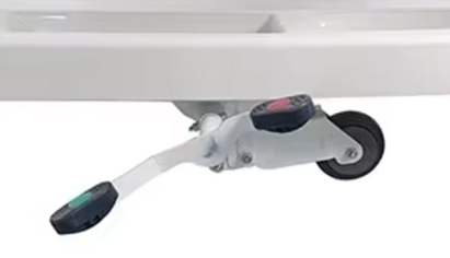 * 6 tuuman kaksipuoliset pyörät, joissa on keskuslukituspoljin turvallisuuden ja vakauden lisäämiseksi.